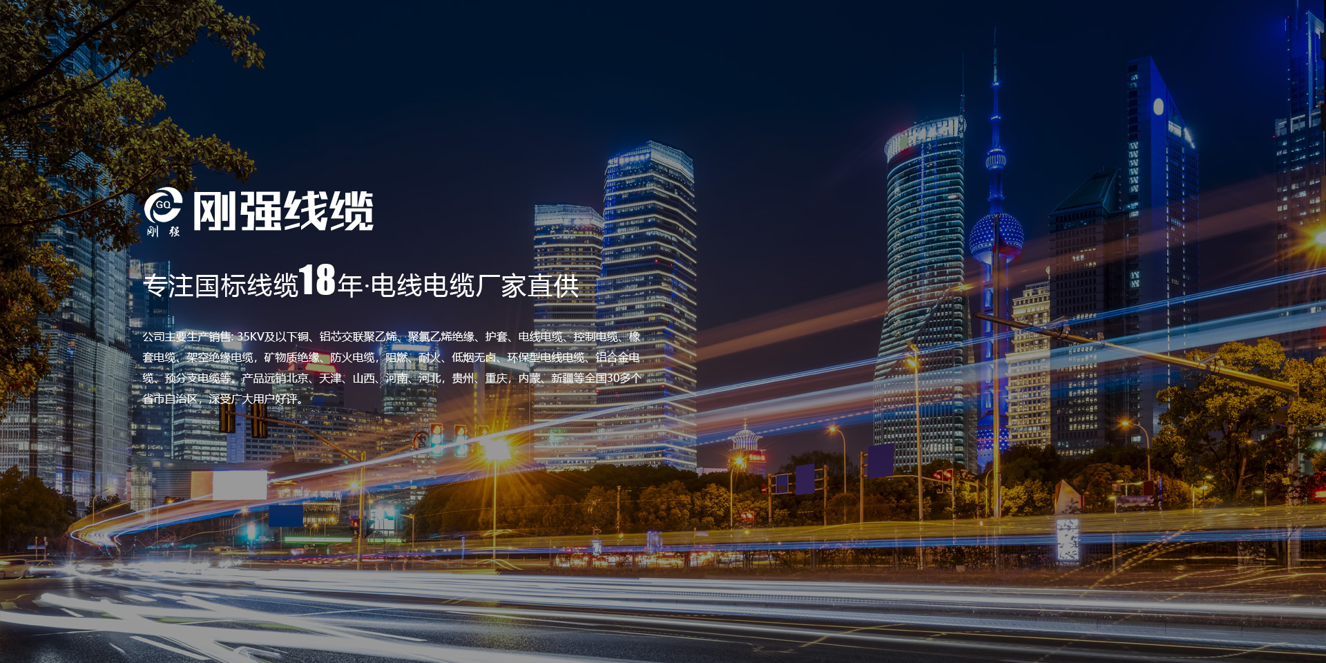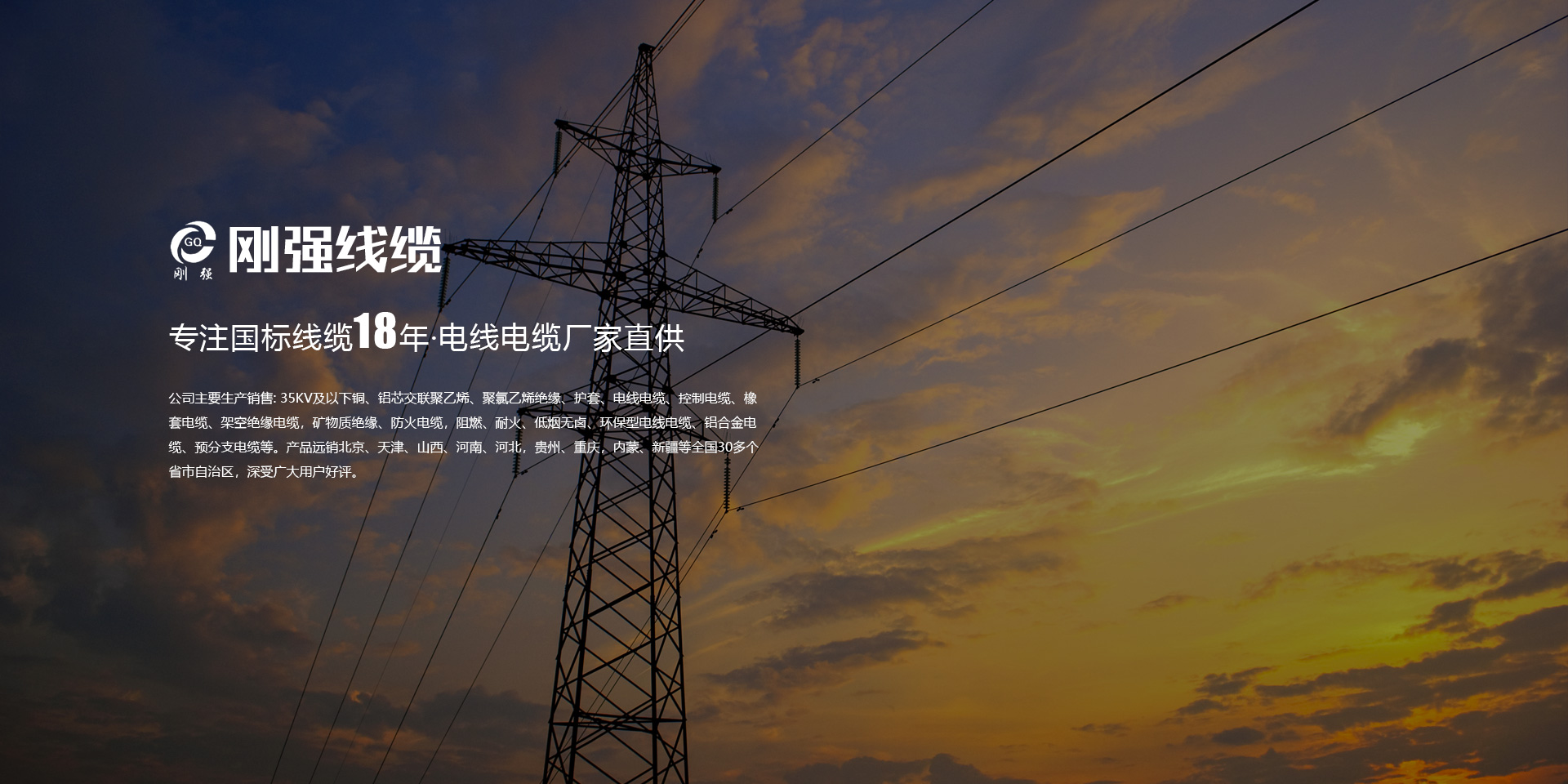 • 公司主要生產銷售: 35KV及以下銅、鋁芯交聯聚乙烯、聚氯乙烯絕緣、護套、電線電纜、控制電纜、橡套電纜、架空絕緣電纜,礦物質絕緣、防火電纜,阻燃、耐火、低煙無鹵、環保型電線電纜、鋁合金電纜、預分支電纜等。產品遠銷北京、天津、山西、河南、河北,貴州、重慶,內蒙、新疆等全國30多個省市自治區,深受廣大用戶好評。